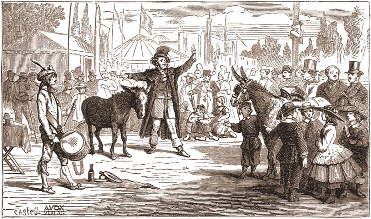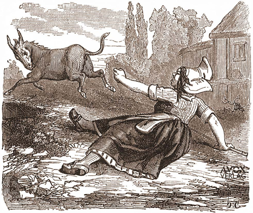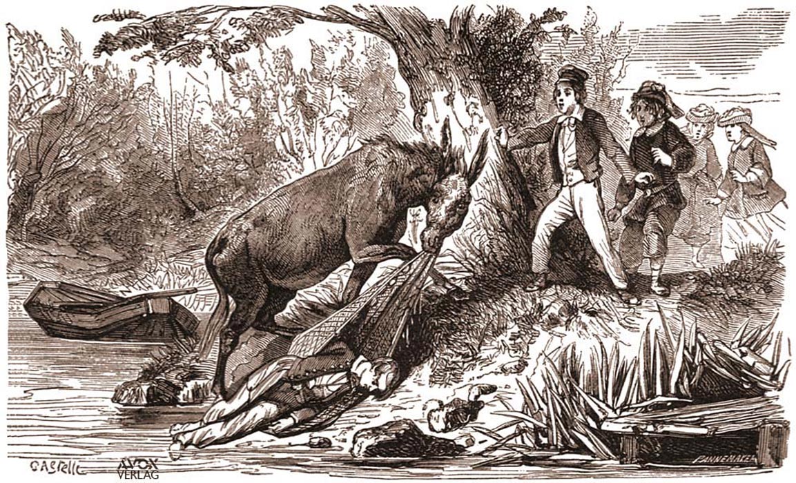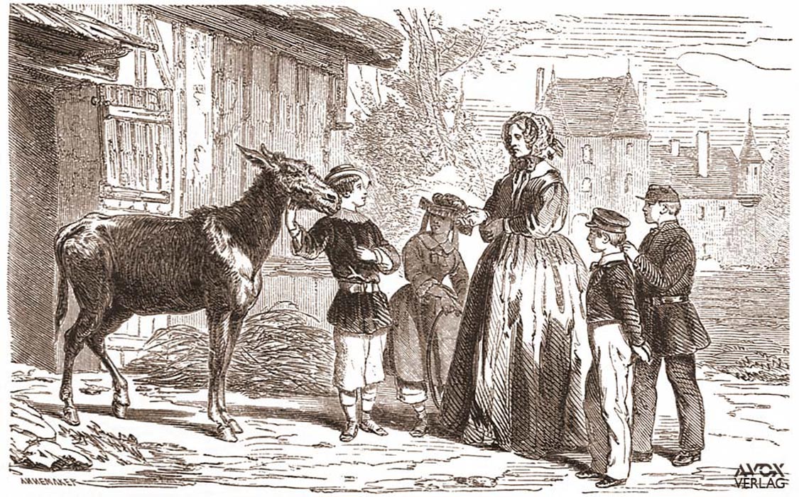 „Nachdem Ihr dieses Büchlein gelesen habt, werdet Ihr Euch endlich eingestehen müssen, dass, statt wie bisher zu sagen: ‚Dumm wie ein Esel, unwissend wie ein Esel, eigensinnig wie ein Esel, frech wie ein Esel‘, es vielmehr von nun an richtig heißen muss: ‚Geistreich wie ein Esel, klug wie ein Esel, verständnisvoll wie ein Esel, liebevoll wie ein Esel.‘ Und ich bin mir sicher, dass Ihr und Eure lieben Eltern noch stolz auf diese Lobeserhebungen sein werdet. I-ah!“